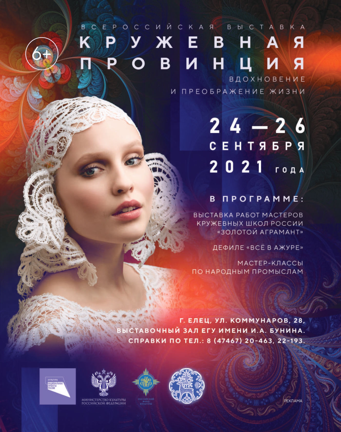 «Кружевная провинция: вдохновение и преображение жизни»Проект «Кружевная провинция: вдохновение и преображение жизни» посвящен 875-летию города Ельца, 220-летию кружевного промысла и 100-летию фабрики НХП «Елецкие кружева».
